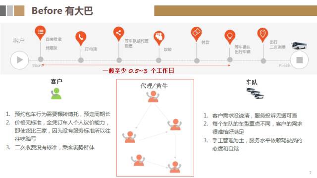 我们预估平均联系每一家租车平台,消费者将需求告诉租车平台,再由租车平台给消费者报价期间所花费的时间为半小时一家。按照一般货比三家的想法,我们光比价就要花去至少2~5个小时。